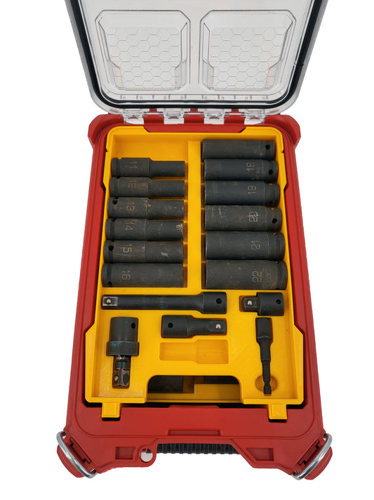 Milwaukee Packout Compact Organizer Compatible Dewalt 1/2" Metric Deep Impact Socket Tray Insert Set