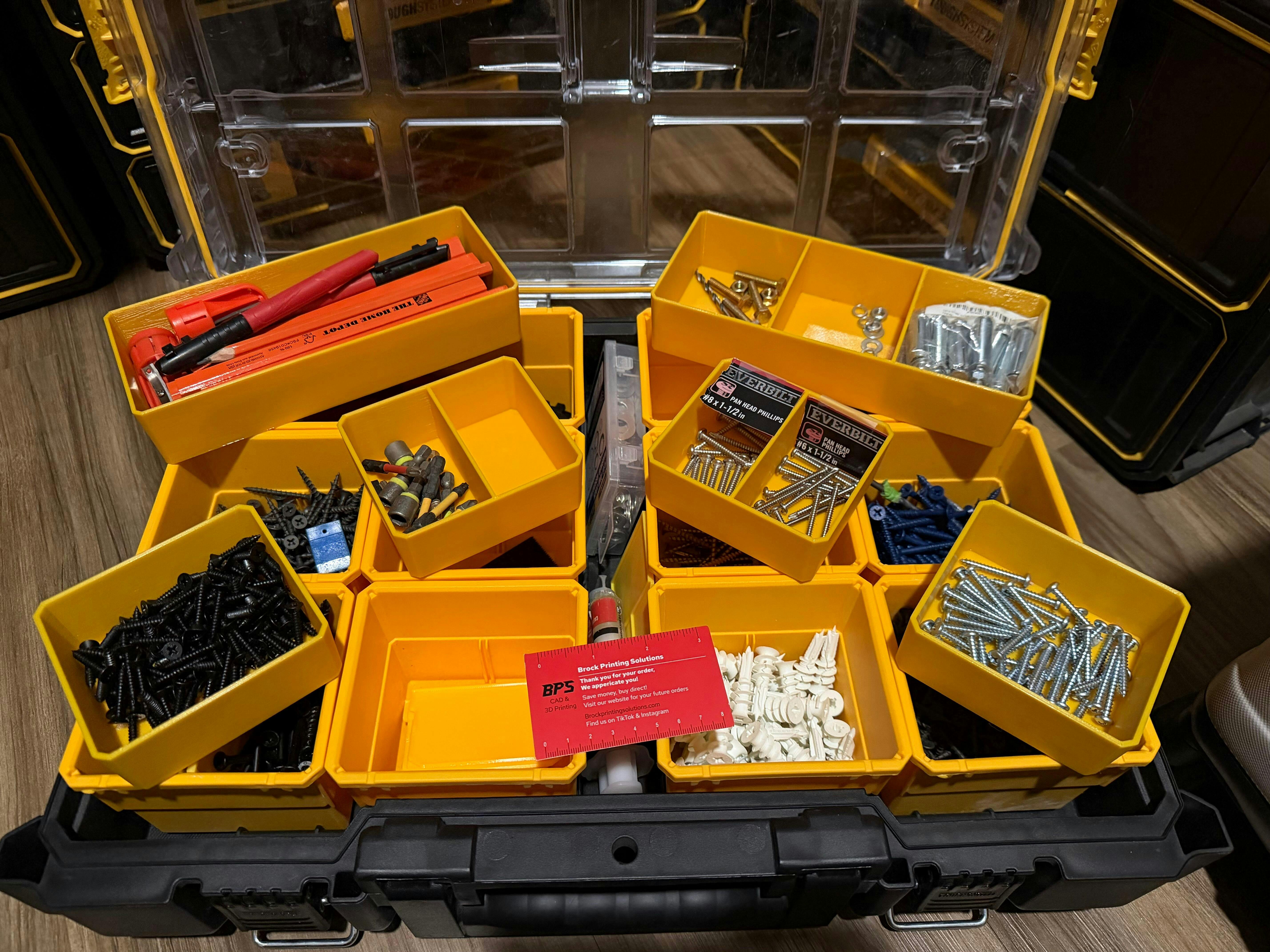 I’ve ordered from BPS several times and have no complaints. When I bought my tough system 2.0 organizer I needed a better way to store my screws and these 3d printed organizers have helped me optimize my storage 3x. Shipping is fast, product is great and the yellow colors match very close to the Dewalt yellow.